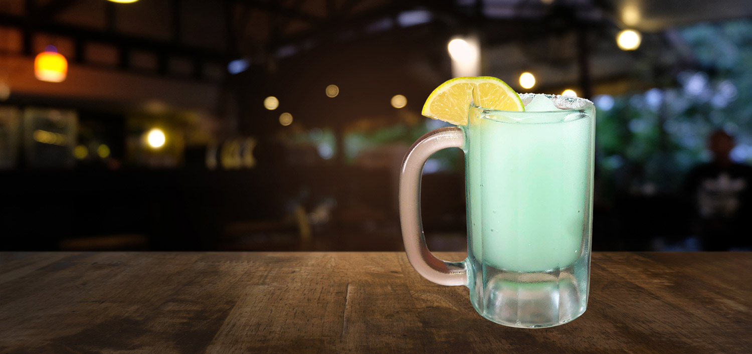 Blue Tarantula Tequila, Blue Curacao, Peach Snapps, Raspeberry Rum, Pinapple Juice and Mamacita’s Margarita Mix. 15