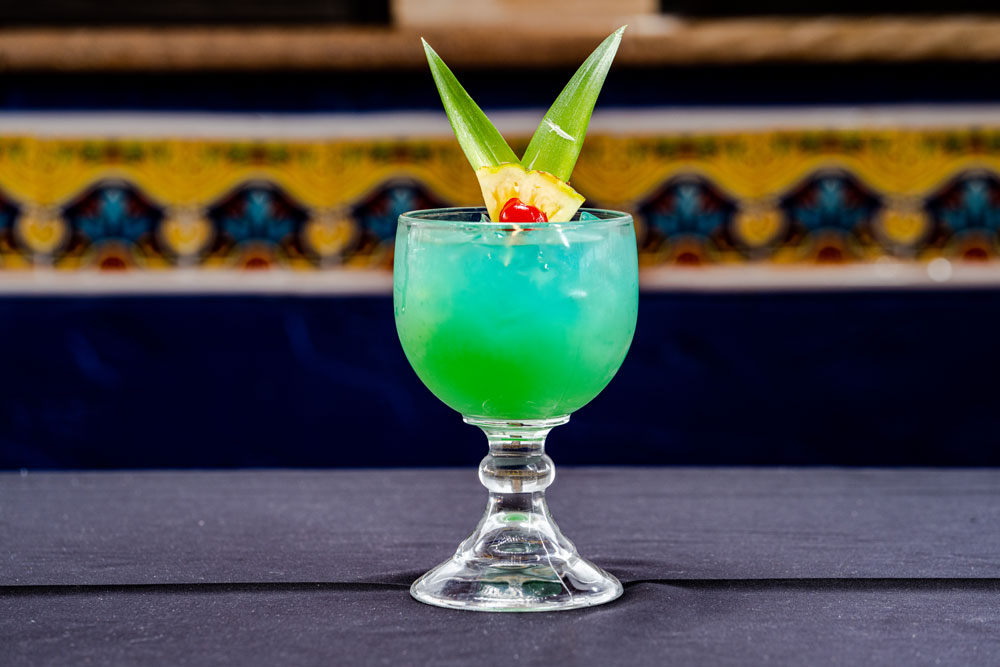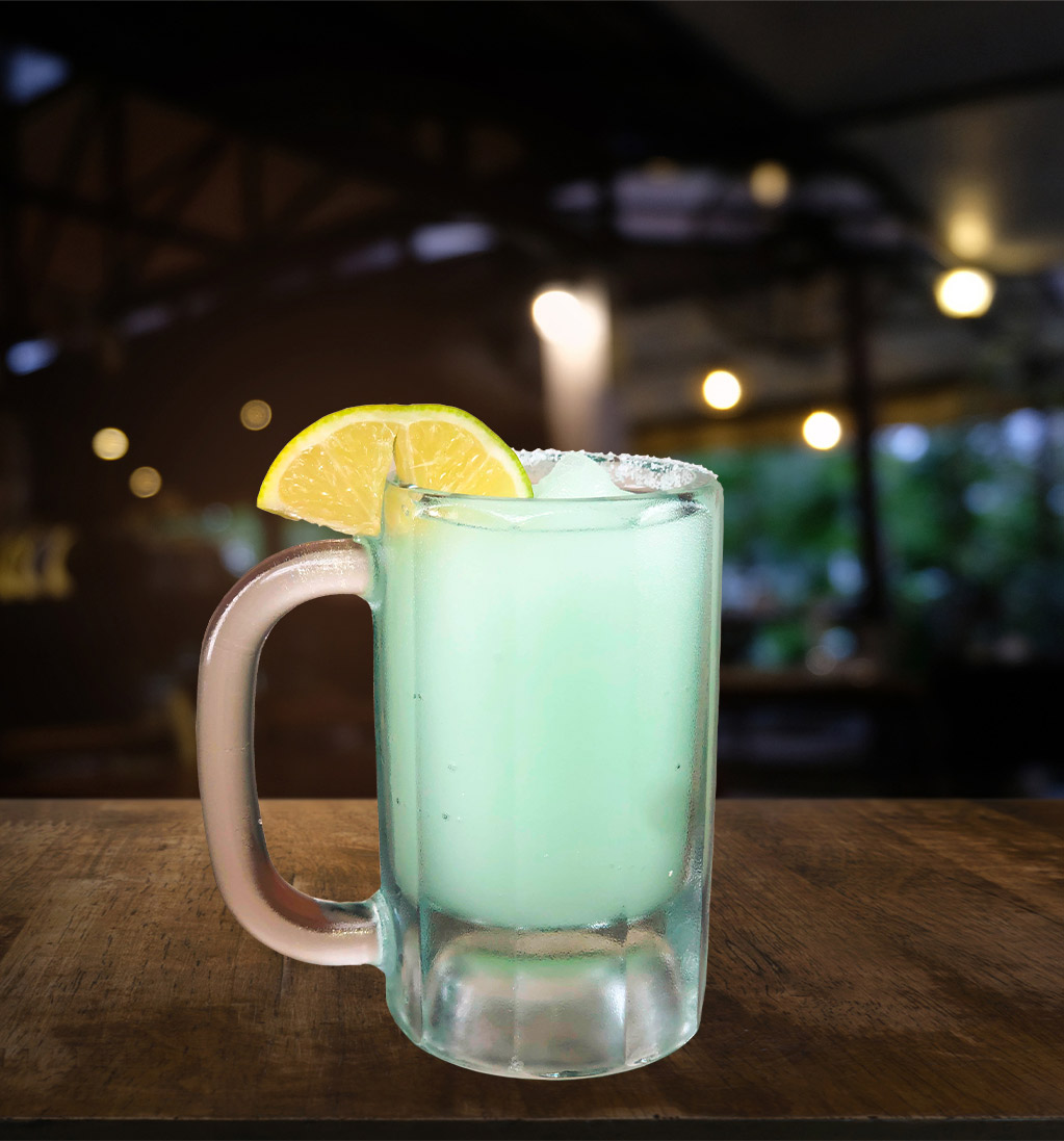 Blue Tarantula Tequila, Blue Curacao, Peach Snapps, Raspeberry Rum, Pinapple Juice and Mamacita’s Margarita Mix. 15