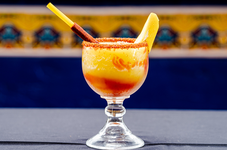 20 oz of our House Margarita Blended with Mango Puree, Chamoy and Tajin. 16