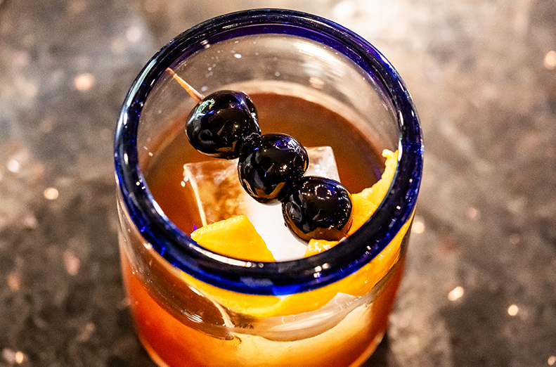 Bulleit Rye Whisky, Brown Sugar Angostura Bitters, Orange Peel and Borboun Cherries. 12