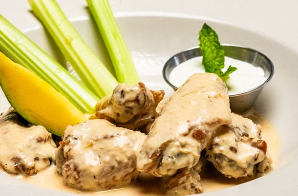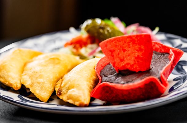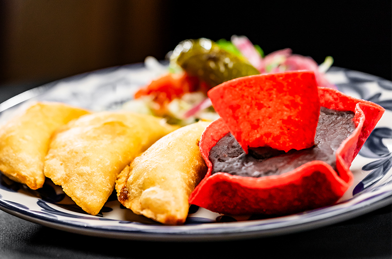 Three ground beef or ranchero chicken empanadas served with black beans and avocado ranch.