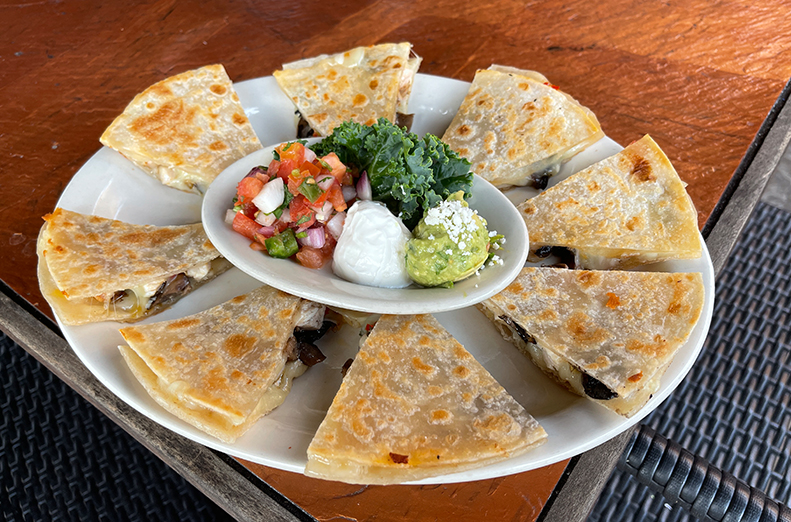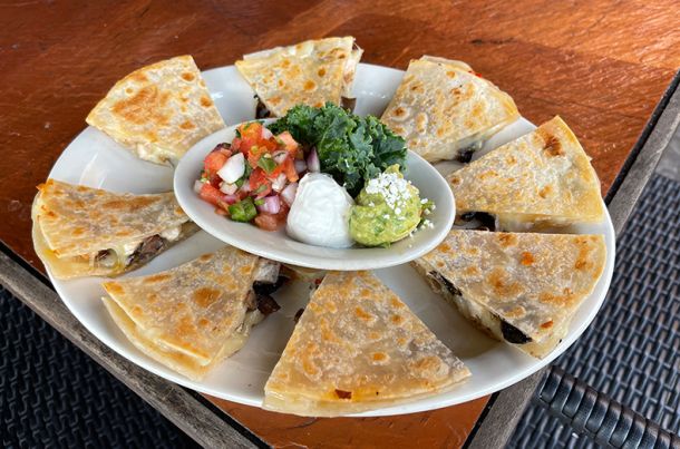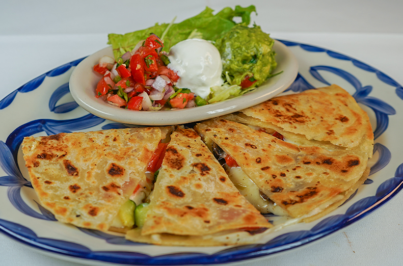 A large flour tortilla filled with Monterey Jack cheese, served with pico de gallo , guacamole and sour cream.