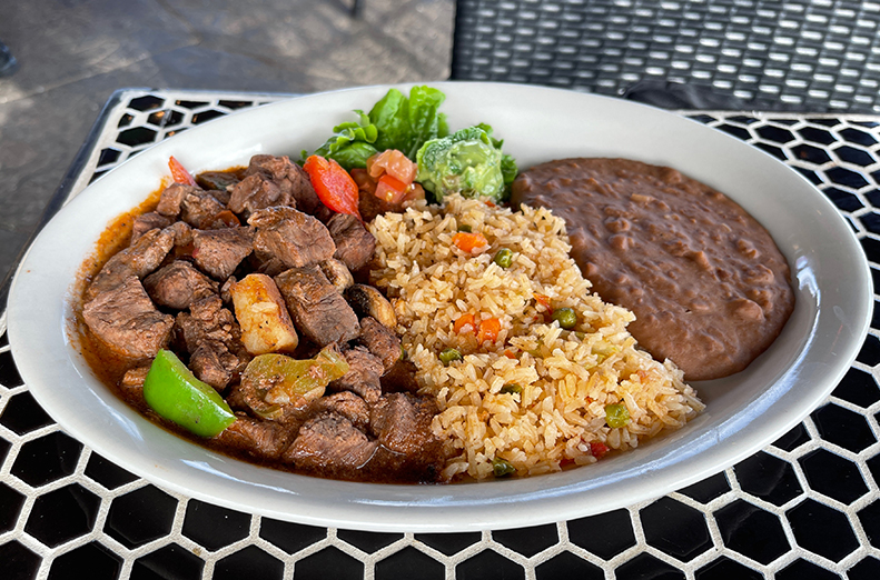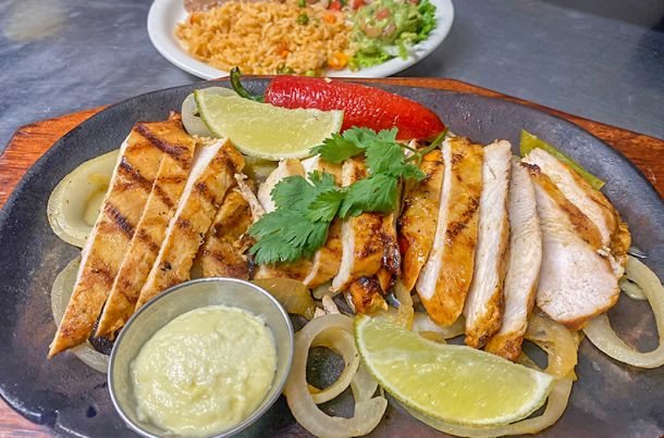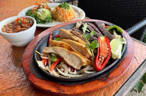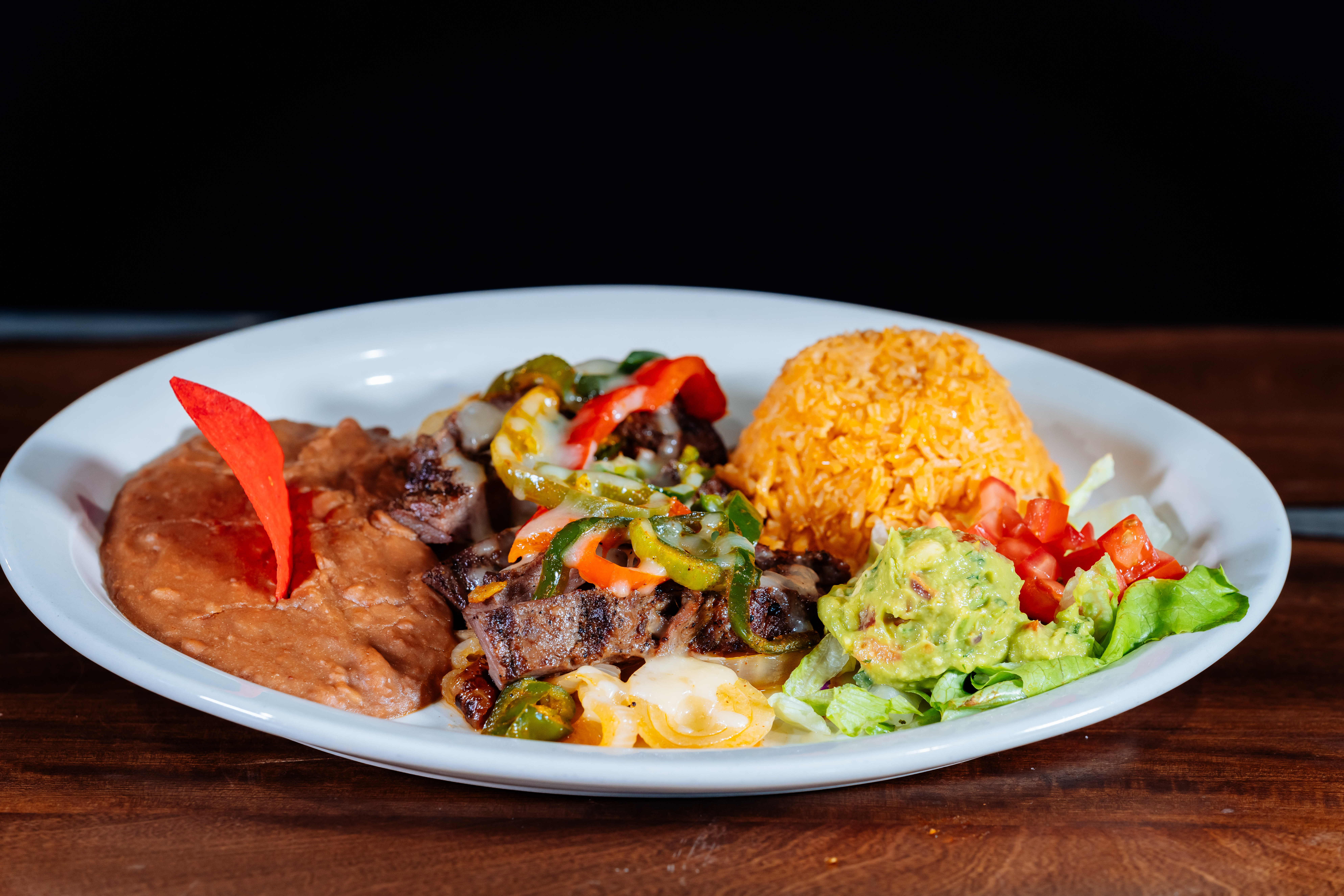 Tender strips of beef or chicken fajita seasoned and broiled to perfection. Served with rice, charro beans, guacamole, pico de gallo and tortillas