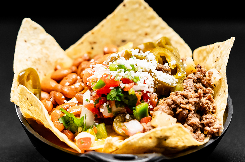 NACHOS GROUND BEEF OR RANCHERO CHICKEN