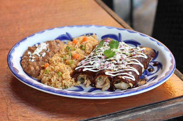 (3) Chicken enchiladas topped with our traditional mole sauce and sour cream.