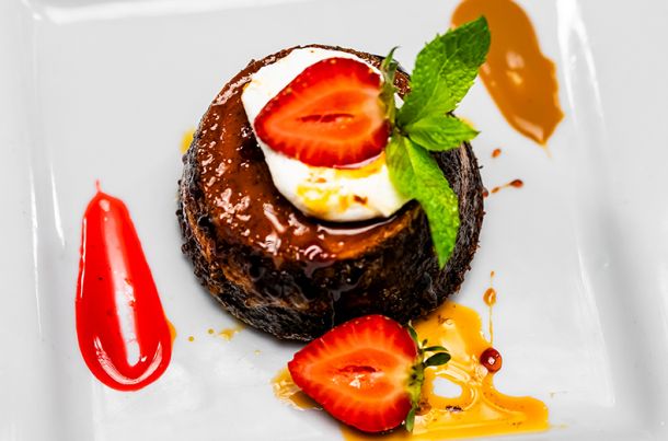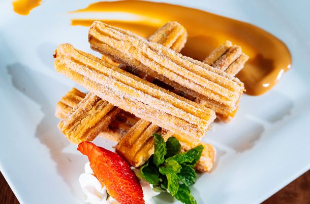 Half of avocado filled with your choice of shrimp, beef or chicken fajita breaded and deep-fried on a bed of ranchero sauce topped with chipotle dressing and queso fresco. Served with rice and charro beans.