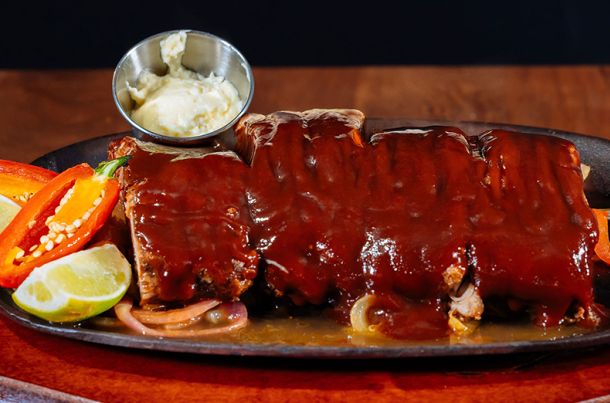 Oven cook to perfection, smothered in bbq sauce and served on a bed of grilled onions.